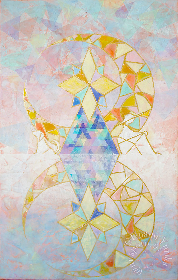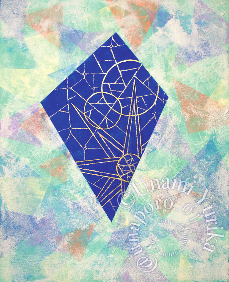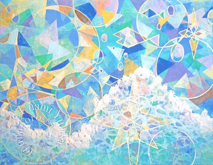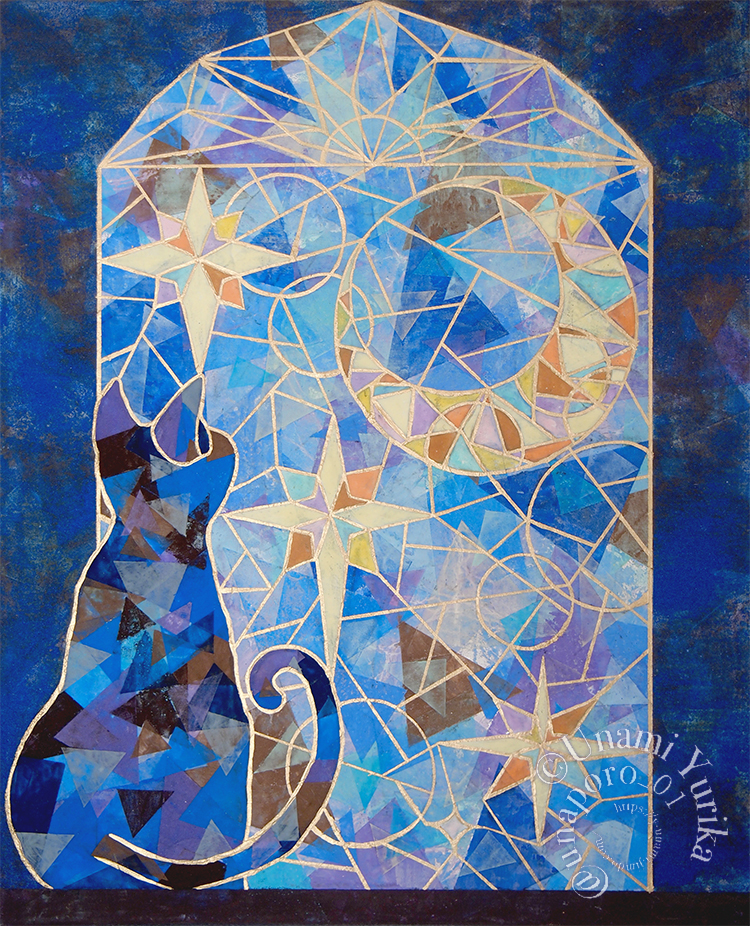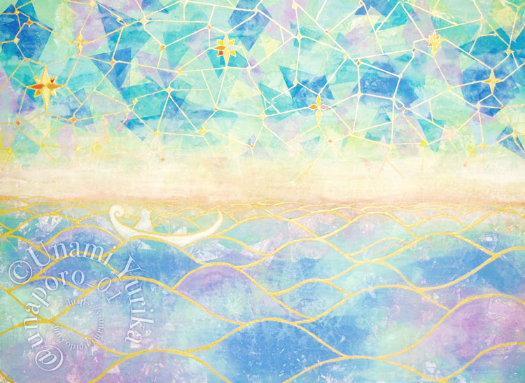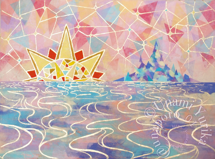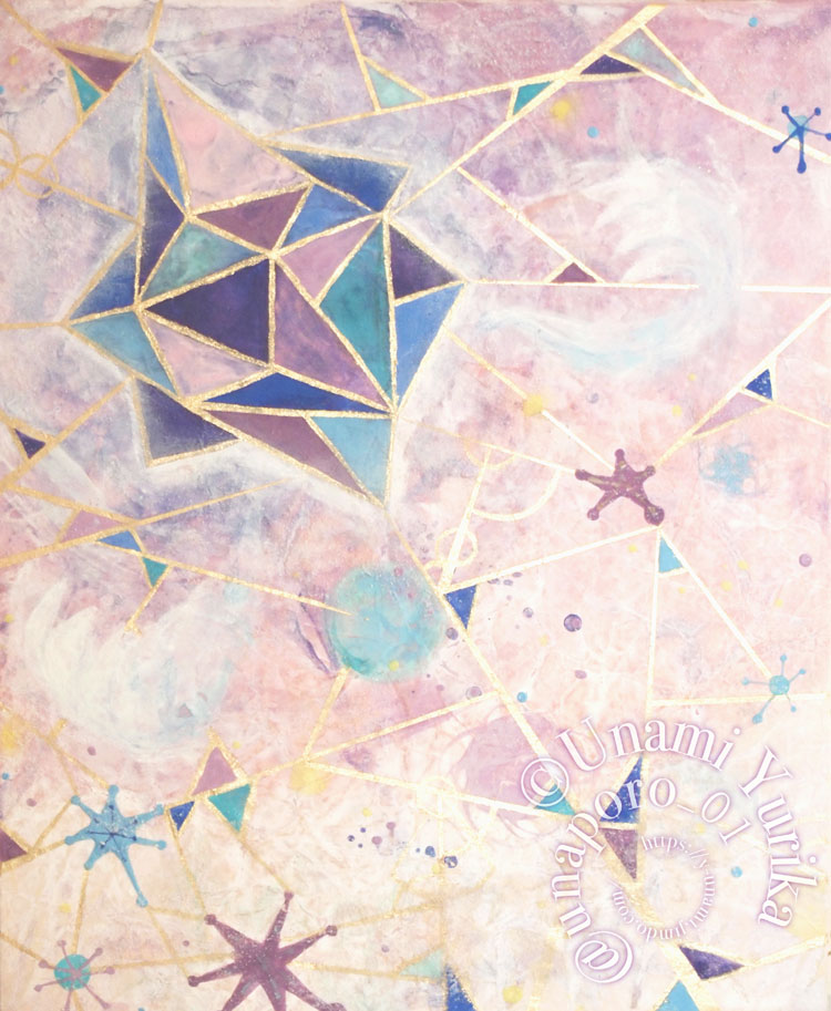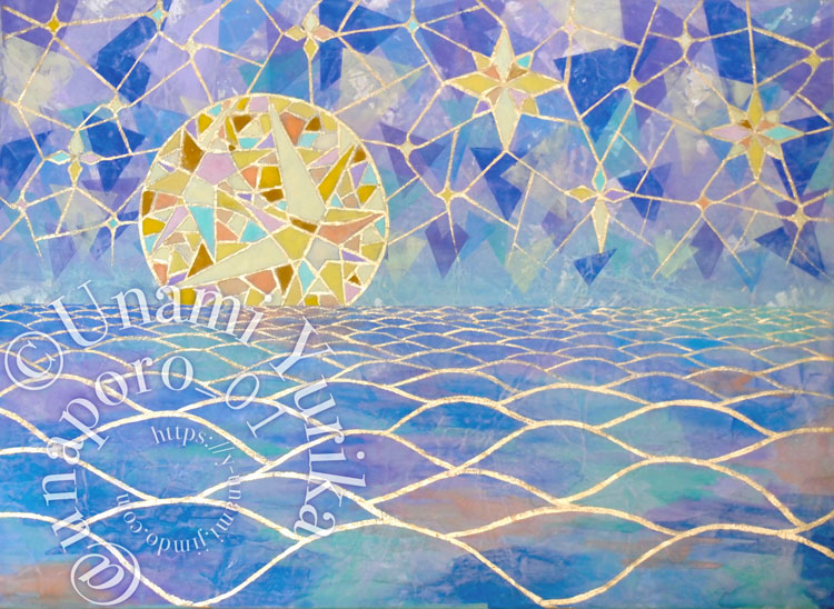 2014年 / 雲肌麻紙に岩絵具,純銀箔,洋金箔,金属粉,貝彩石,蛍光塗料 / F0号 / (個人蔵)