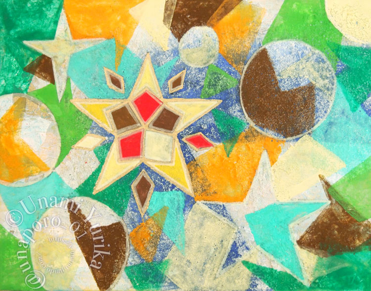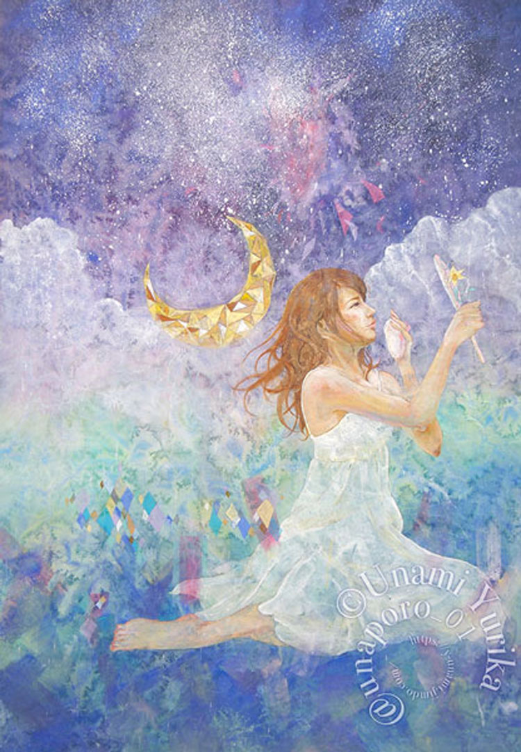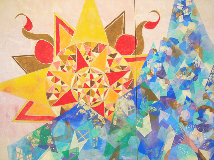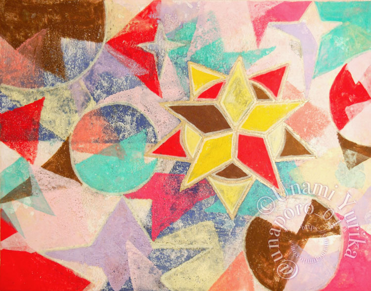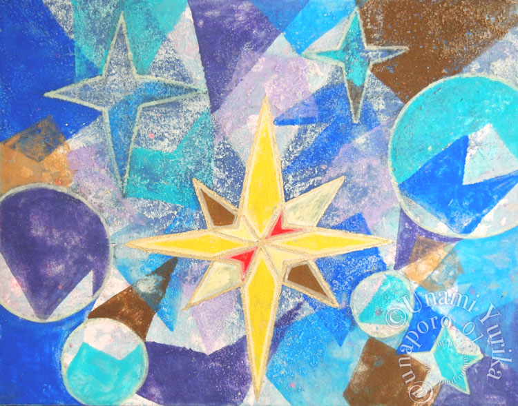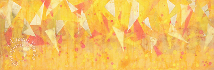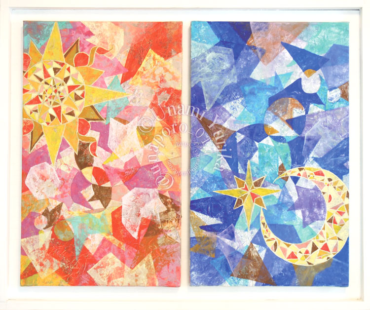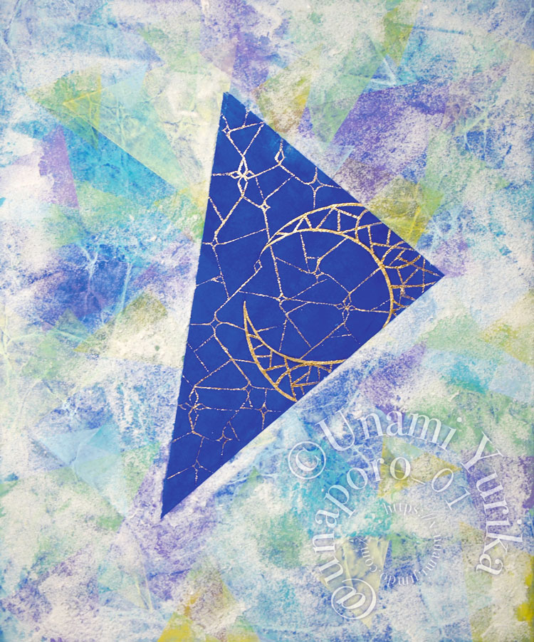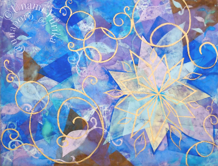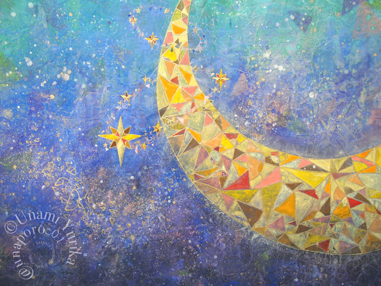 2014年 / 雲肌麻紙に岩絵具,純銀箔,洋金箔,金属粉,貝彩石,蛍光塗料 / F0号 / (個人蔵)