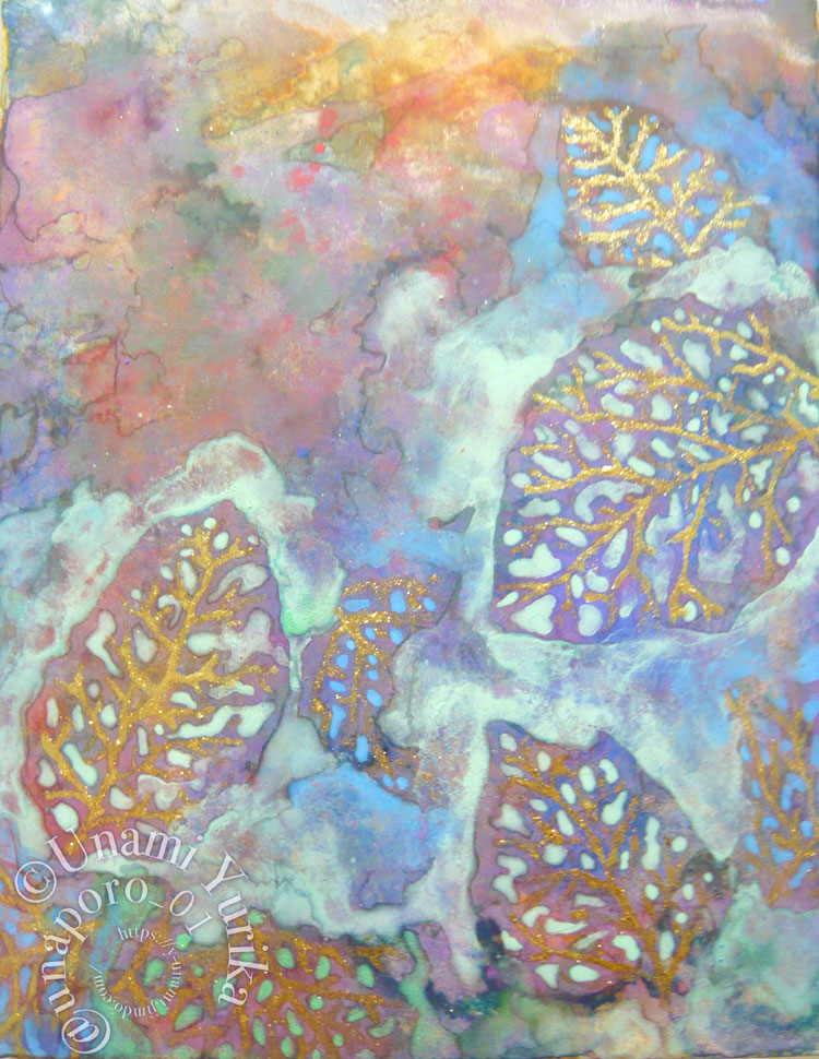 2016年 / 雲肌麻紙に岩絵具,洋金箔,金属粉 / 140×140mm / (個人蔵)