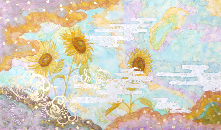 2014年 / 雲肌麻紙に洋金箔,純銀箔,岩絵具,金属粉 / 643×536mm(額込)
