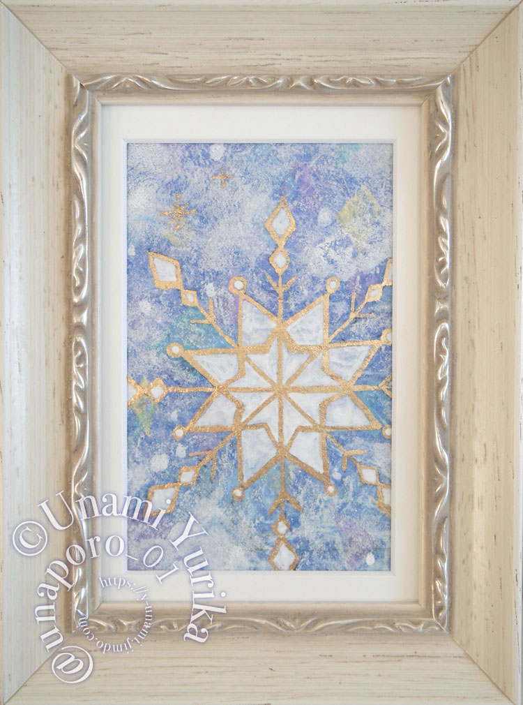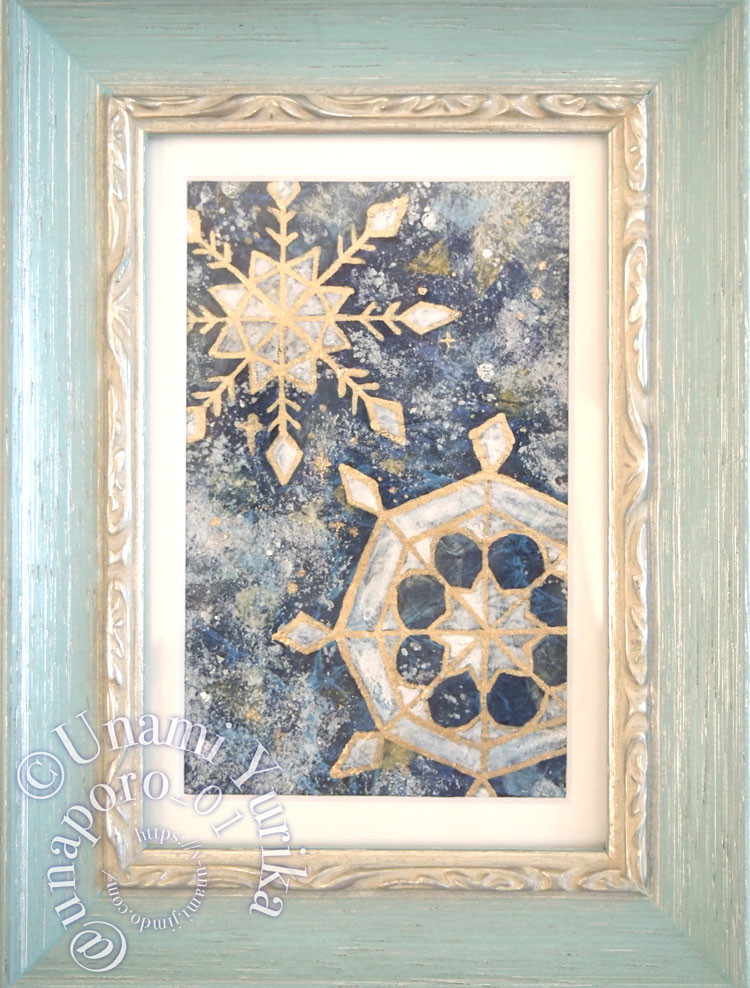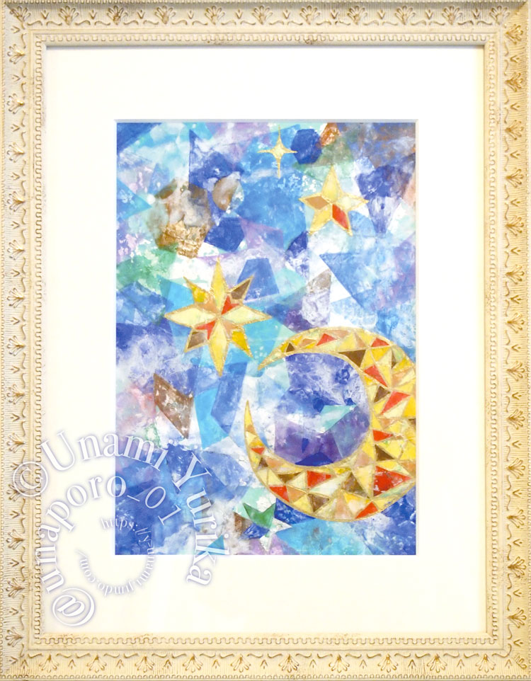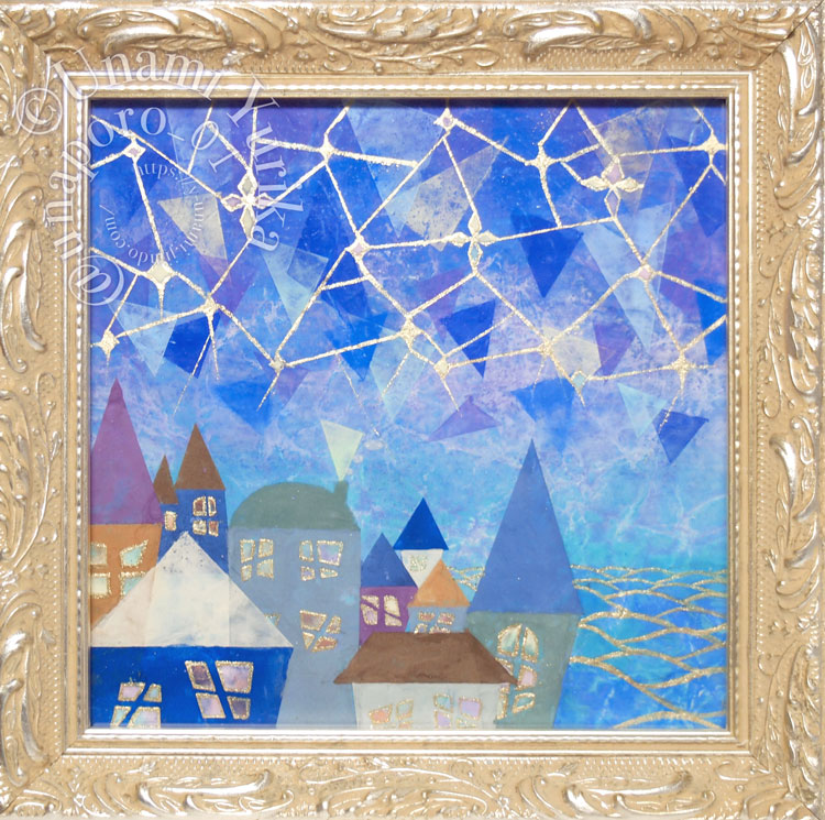 2014年 / 雲肌麻紙に岩絵具,金属粉,胡粉,貝彩石 / 130×170mm(額込)