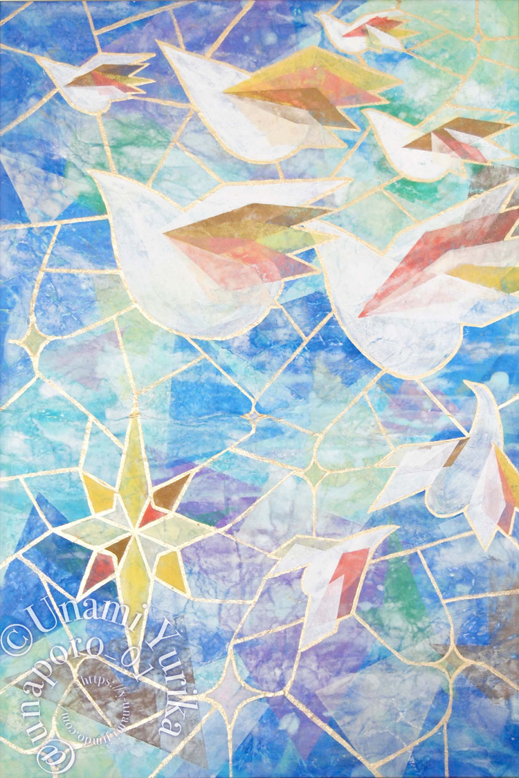2017年 / 高知麻紙に岩絵具,金属粉,貝彩石 / F3号